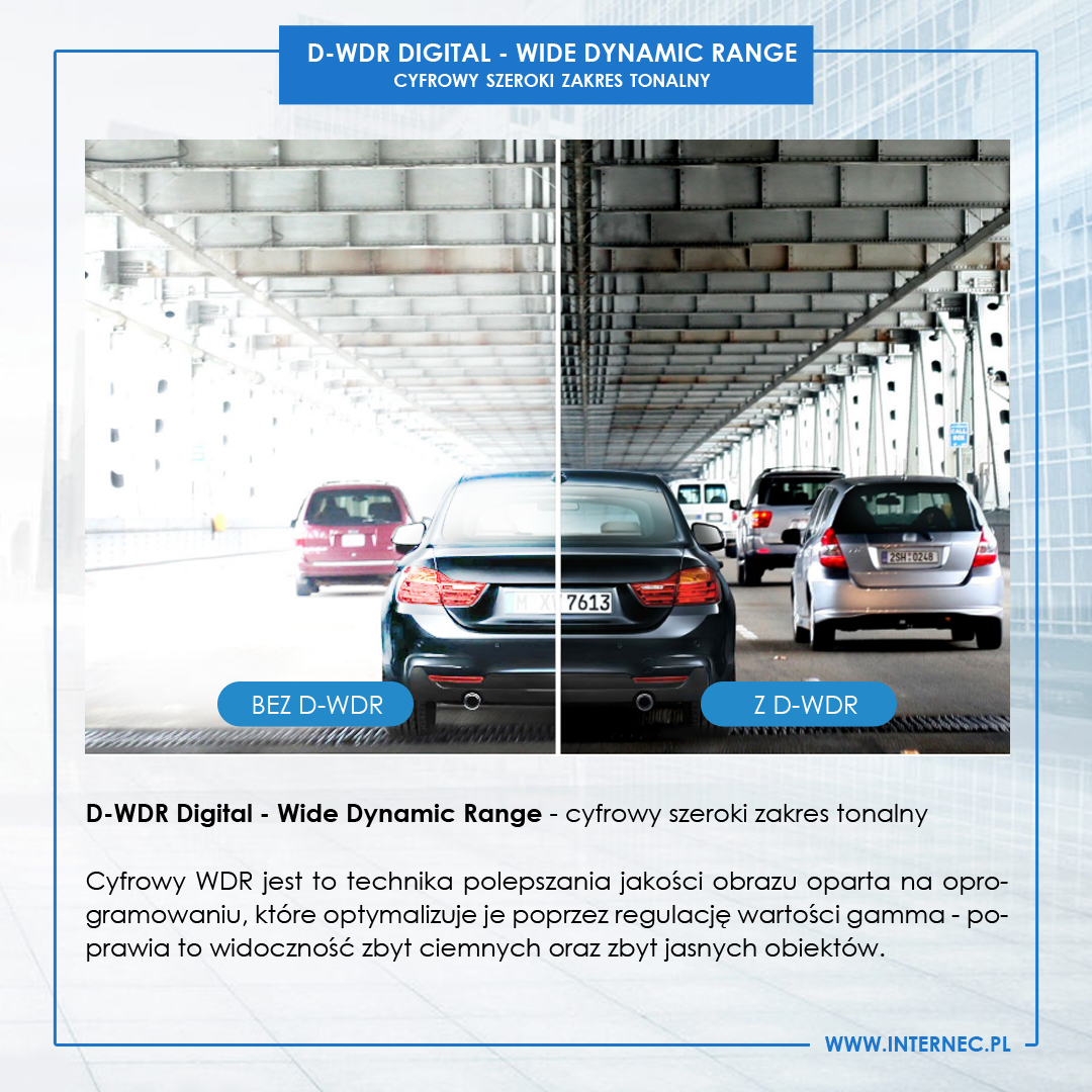 DWDR (Digital Wide Dynamic Range) to oparta na oprogramowaniu technika poprawy obrazu, której celem jest zrównoważenie ekspozycji w scenach o wysokim kontraście. W przeciwieństwie do technologii True WDR, która opiera się na zaawansowanej matrycy wykonującej kilka zdjęć sceny z różnymi poziomami naświetlenia i łączącej je w jeden, zoptymalizowany obraz, DWDR działa na zupełnie innej zasadzie.