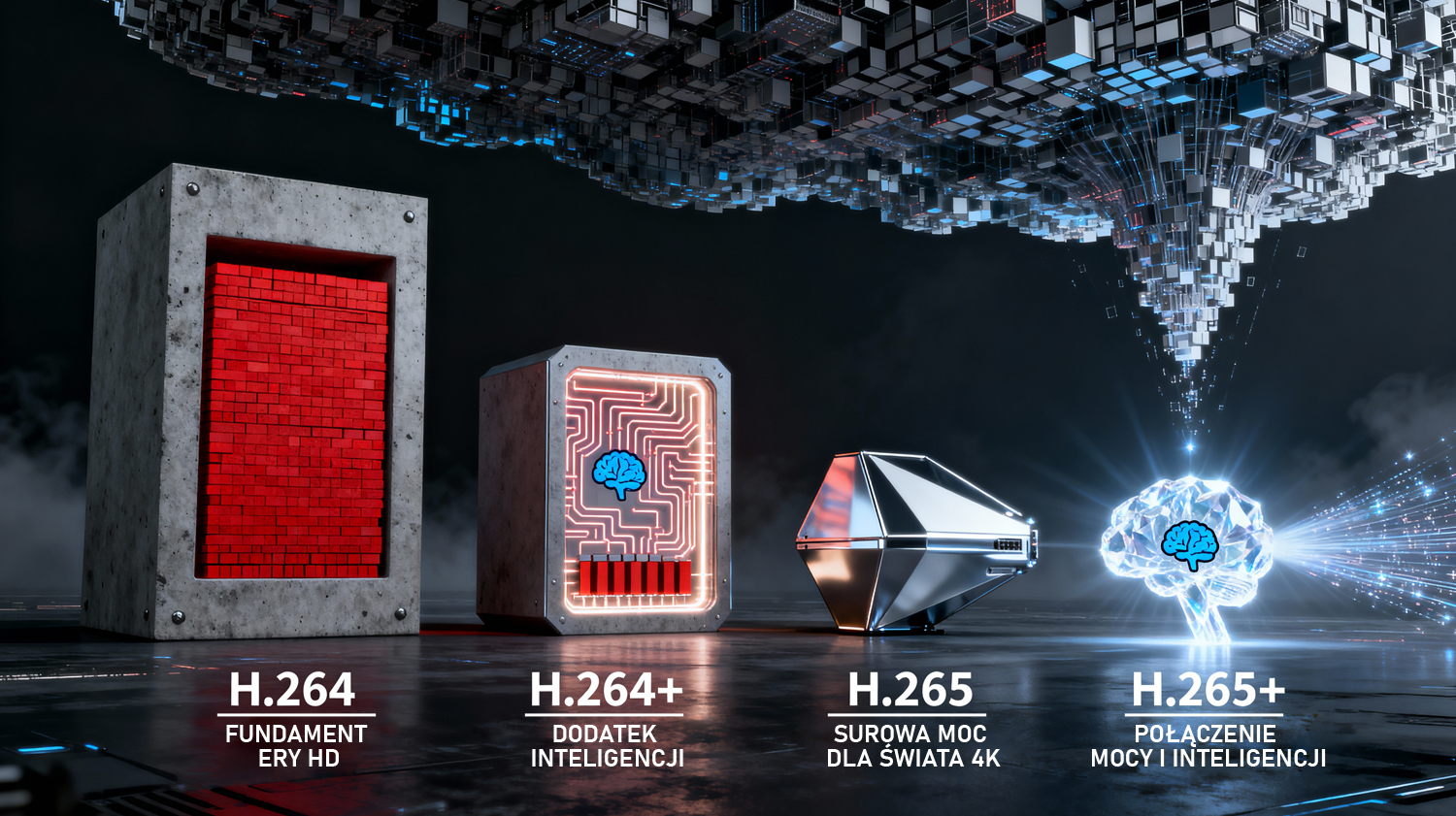 Wraz z nadejściem ery Ultra HD, potrzebny był zupełnie nowy, potężniejszy silnik. H.265 (HEVC) to prawdziwy następca H.264, zaprojektowany od podstaw z myślą o ogromnych rozdzielczościach. Dzięki znacznie bardziej zaawansowanym algorytmom, oferuje on około dwukrotnie lepszą kompresję niż jego poprzednik. Oznacza to, że obraz w tej samej jakości zajmuje o połowę mniej miejsca. Jest to skok generacyjny, który jednak wymaga znacznie większej mocy obliczeniowej do działania.Szczyt Ewolucji: H.265+ – Połączenie Mocy i Inteligencji
