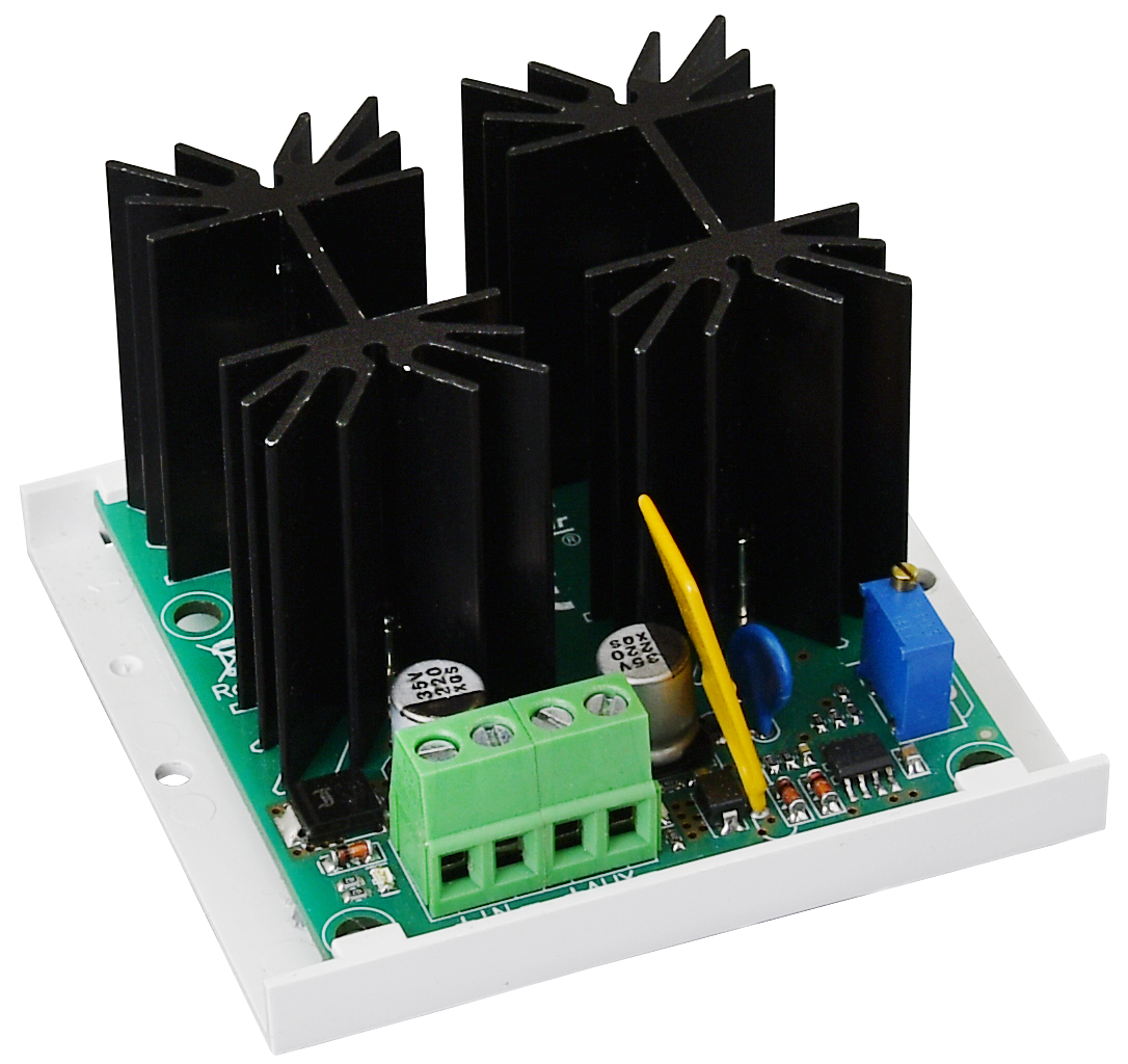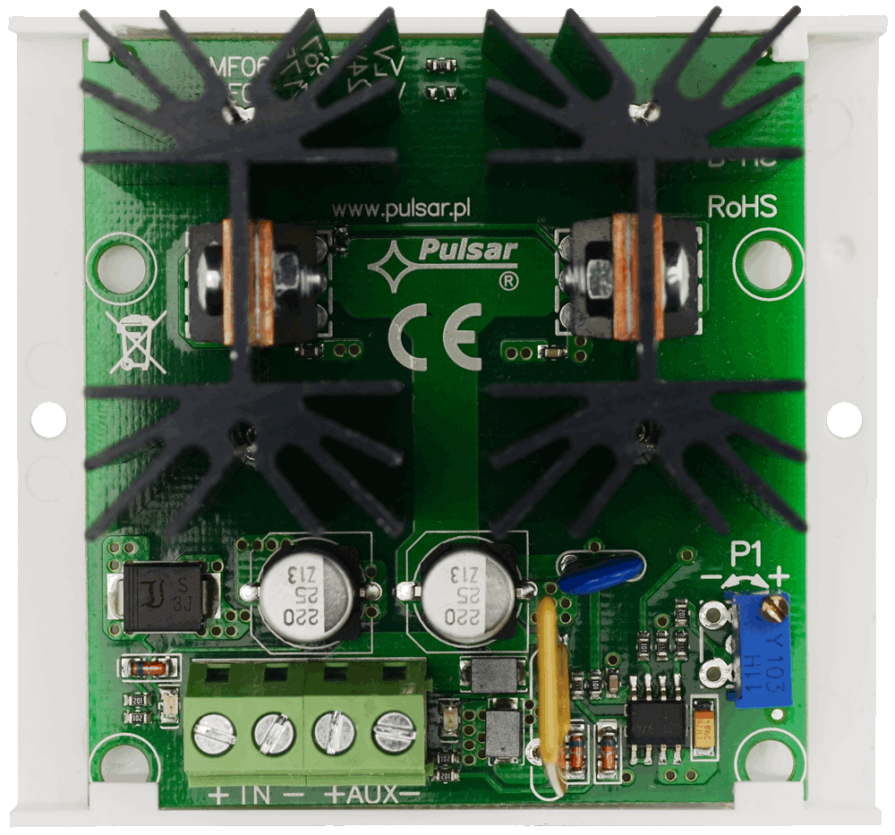 Reduktor napięcia RN 12V/5A (RN500) służy do obniżenia i stabilizacji napięcia DC z zakresu 12÷14V do wartości 12V (regulacja 11V÷Uin DC). W przypadku, gdy napięcie wejściowe spadnie poniżej progu ustawionego napięcia wyjściowego, następuje całkowite otwarcie tranzystora i reduktor przewodzi bezstratnie (spadek napięcia ΔU<1%). Pozwala to na pełne wykorzystanie energii zgromadzonej w akumulatorze zasilacza przy pracy bateryjnej.