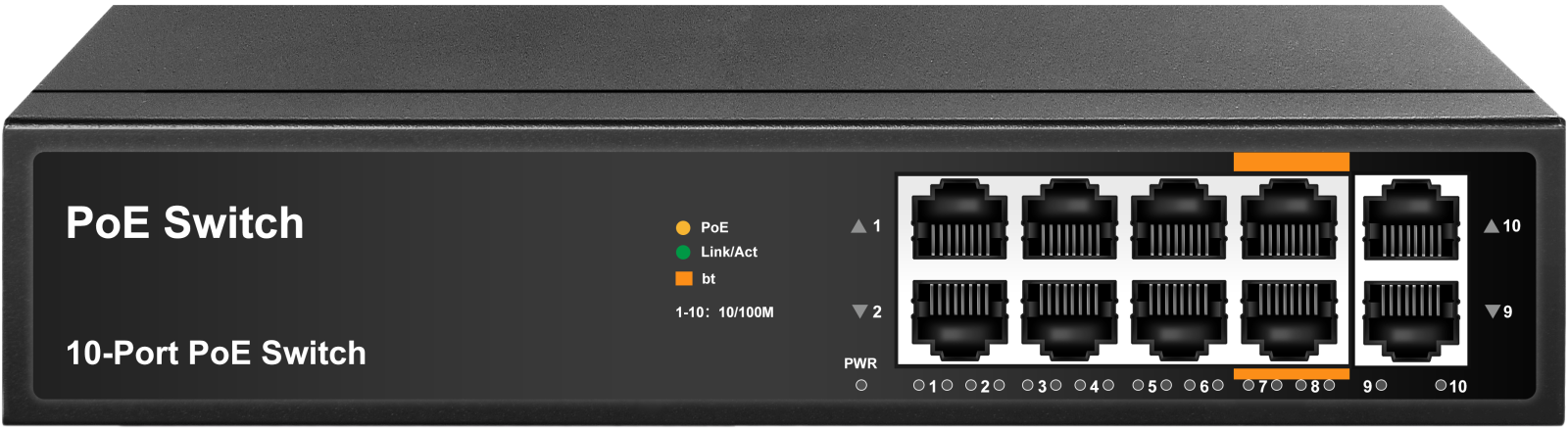 SPEOE82J jest wyspecjalizowanym, niezarządzalnym switchem do zastosowań wewnętrznych, zaprojektowanym do obsługi systemu monitoringu oraz innych systemów sieciowych. Zapewnia 8 portów PoE o przepustowości 10/100 Mbps (do podpięcia kamer PoE) oraz 2 porty uplink (do podłączenia rejestratora, routera lub kolejnego switcha). Switch SPEO82J wykrywa nieprawidłowo pracujące urządzenie PoE i automatycznie je restartuje, podaje zasilanie tylko do urządzeń PoE - pod porty PoE można podłączyć inne urządzenia bez ryzyka ich uszkodzenia. Porty PoE nr 7 i 8 obsługują standard IEEE802.3bt, a maksymalny pobór moc na nich to 60W. Urządzenie posiada inteligentny tryb 'extend' pozwalający na podłączenie urządzenia zasilanego PoE na przewodzie o długości do 250m. Dla długości od ok. 100m prędkość transmisji zostaje zmniejszona i przełączona na tryb ≤ 10Mbps. W zależności od jakości okablowania próg długości kabla dla przełączania może być inny. Odległość na portach up-link to do 100m, praca w trybie 10/100Mbps.
