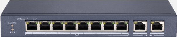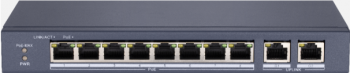 8-portowy switch PoE z dwoma portami uplink 10/100/1000 Mbps.