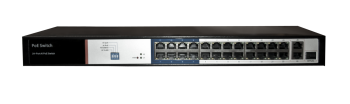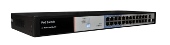 24-portowy switch PoE z jednym portem uplink 10/100/1000 Mbps, jednym portem uplink 1Gbps oraz jednym portem SFP