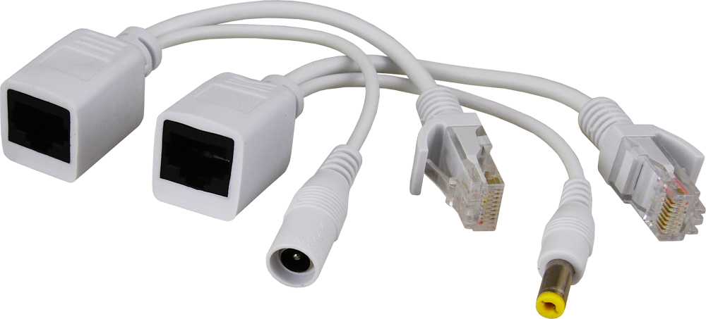 Zestaw adapterów PoE ze złączami typu RJ45 i 2.1/5.5