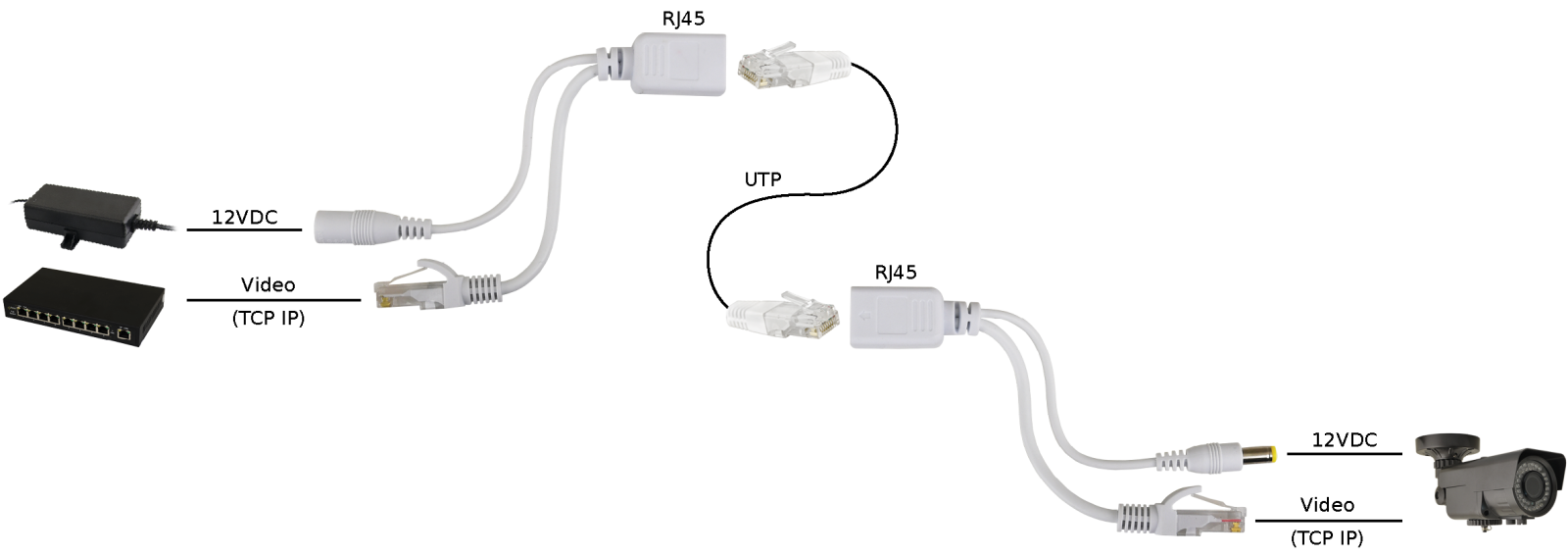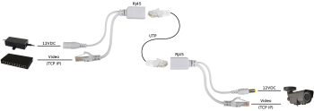 Zestaw służy do przesyłania sygnału TCP IP i zasilania za pomocą jednej skrętki komputerowej. W przypadku transmisji danych (TCP IP) wykorzystywane są pary 1-2 i 3-6 natomiast zasilanie transmitowane za pomocą par 4-5 i 7-8.