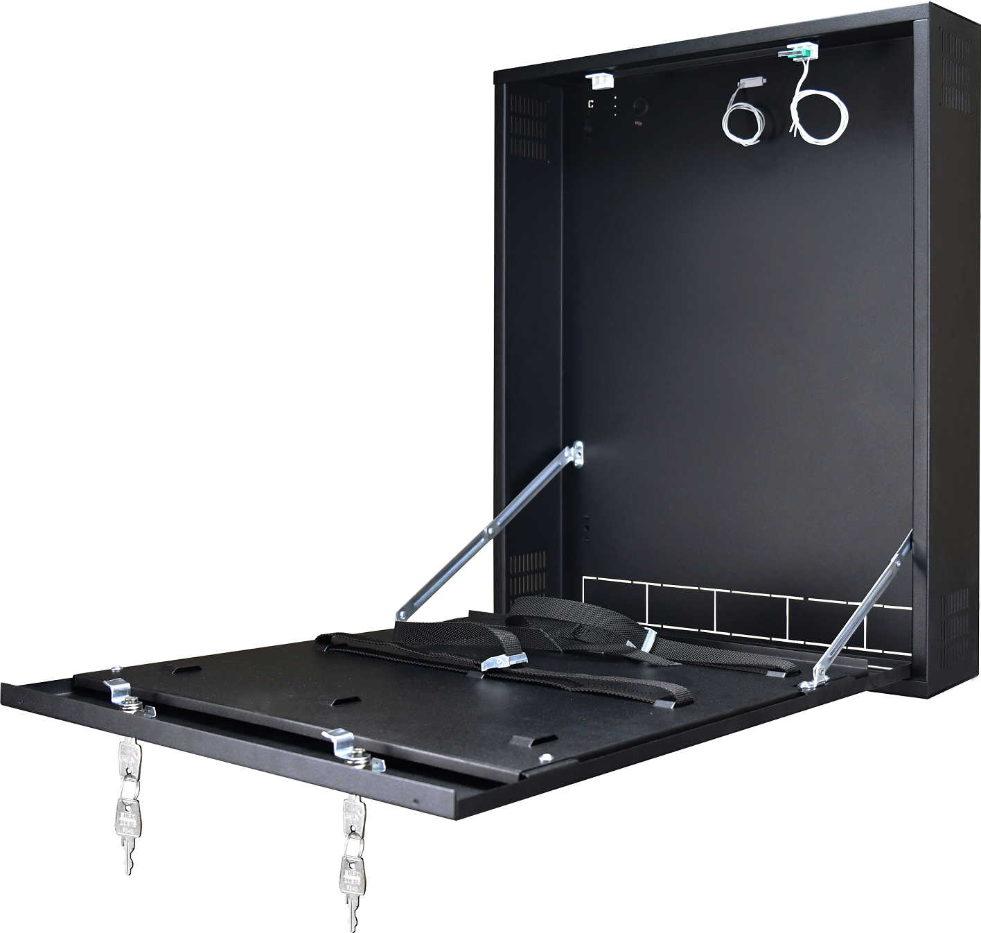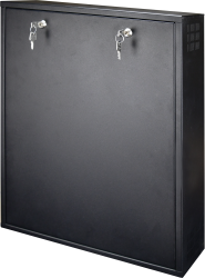Ze względu na pionowy montaż obudowy i niewielką głębokość jest idealnym rozwiązaniem wszędzie tam gdzie nie można zainstalować obudów o dużej głębokości lub szaf typu RACK 19” . Po otwarciu obudowy czołówka przytrzymywana jest w pozycji poziomej, dzięki czemu uzyskujemy łatwy dostęp do przycisków umieszczonych na panelu przednim rejestratora. W obudowie zastosowano specjalny uchwyt z pasami trzymającymi, pozwalający na montaż rejestratorów o wymiarach: szerokości do 470 mm, wysokości do 95 mm, głębokości 485 mm.