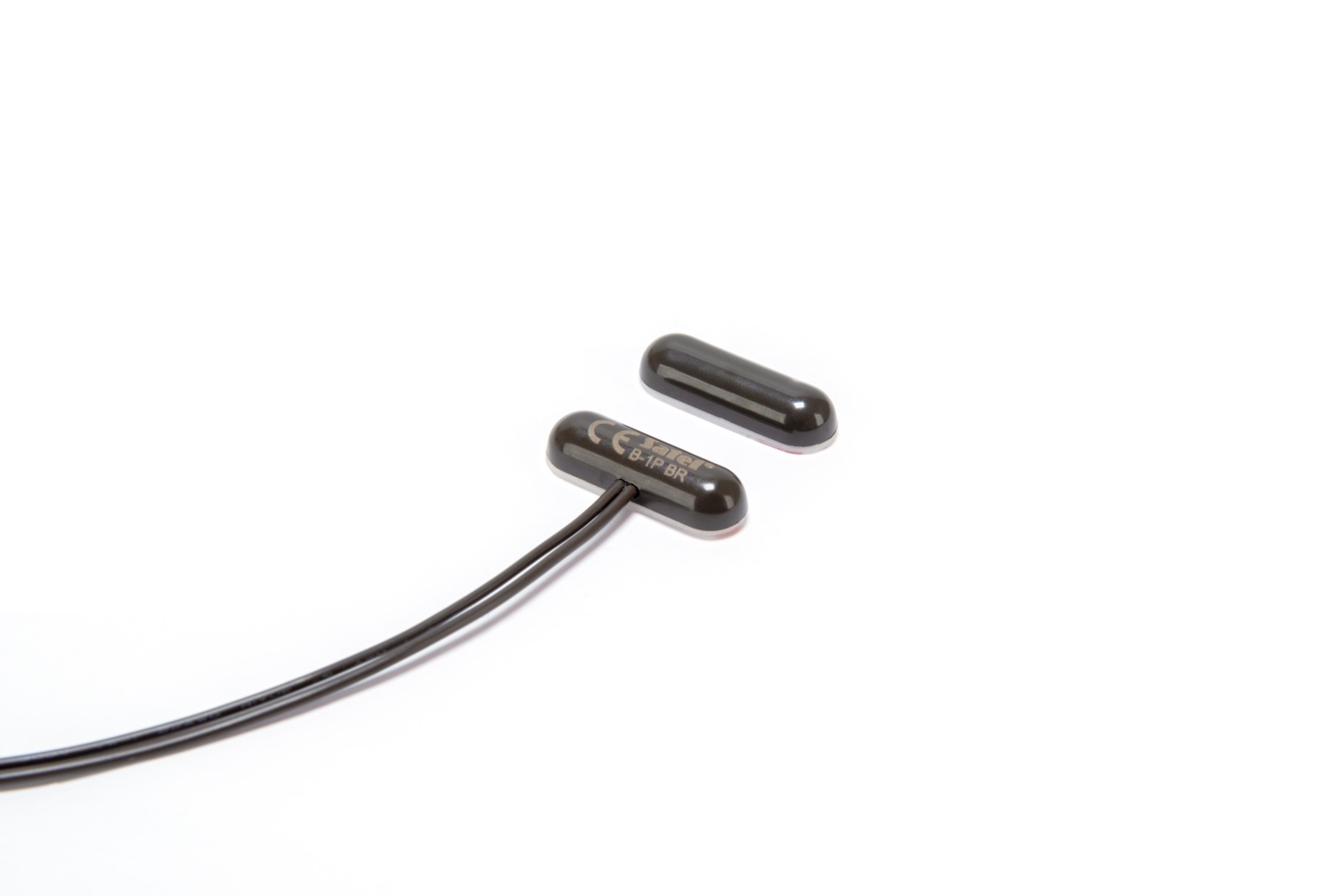 Czujki magnetyczne umożliwiają wykrycie otwarcia drzwi, okien itp. Hermetyczna czujka kontaktronowa B-1P BR ma postać niewielkiej podłużnej pastylki i przeznaczona jest do montażu powierzchniowego (przyklejana do podłoża). Długość przewodu : 40cm.