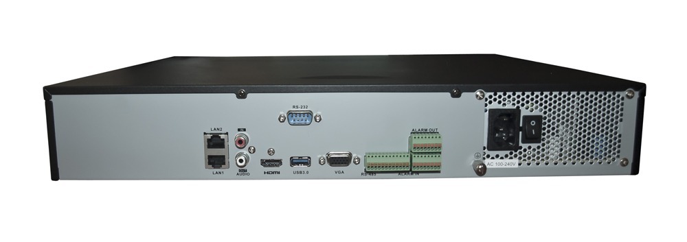 Rejestrator sieciowy z obsługą do 16 kamer IP: 4xHDD, 1xHDMI, 1xVGA, 16 wejść alarmowych, 4 wyjścia alarmowe, 2xLAN 1Gbps.
