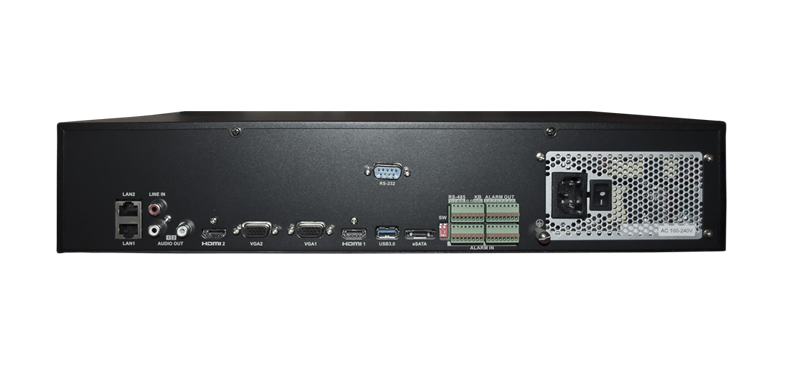 Rejestrator sieciowy z obsługą do 64 kamer IP: 8xHDD, 2xHDMI, 2xVGA, 16 wejść alarmowych, 4 wyjścia alarmowe, RAID, 2xLAN 1Gbps.