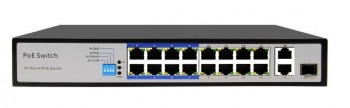 16-portowy switch PoE z jednym portem uplink 10/100/1000 Mbps, jednym portem uplink 1Gbps oraz jednym portem SFP
